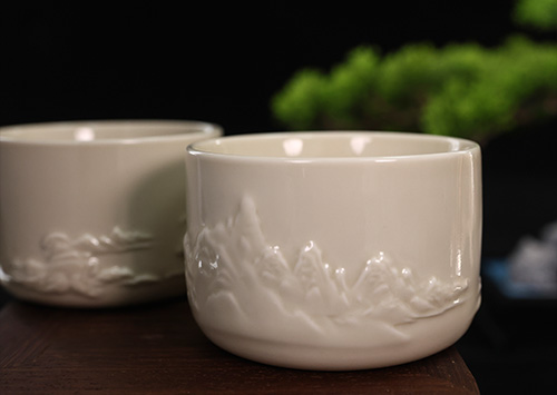 此大宋定窯主人杯杯名“山居”,即以精工雕刻之山居景色,呈現栩栩如生的浮雕效果。